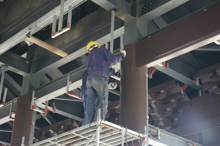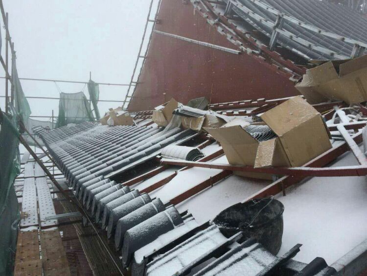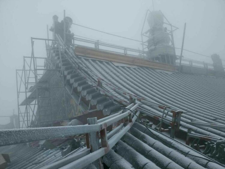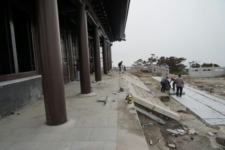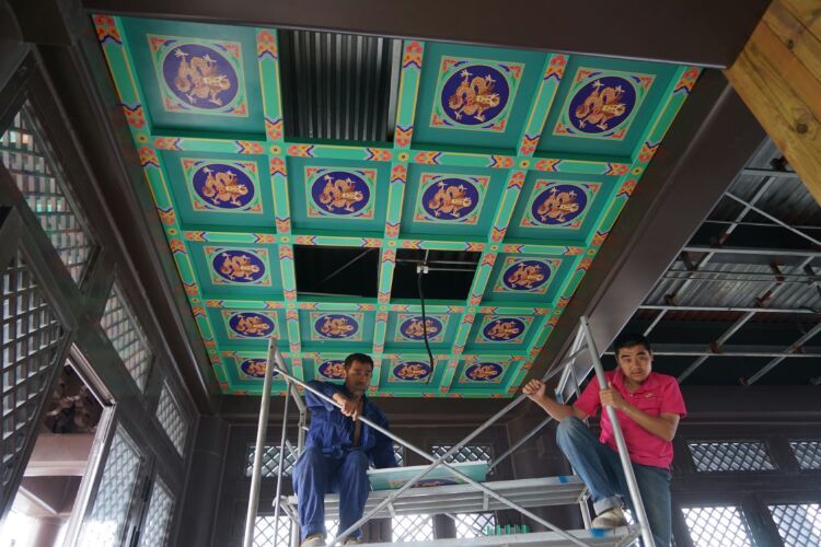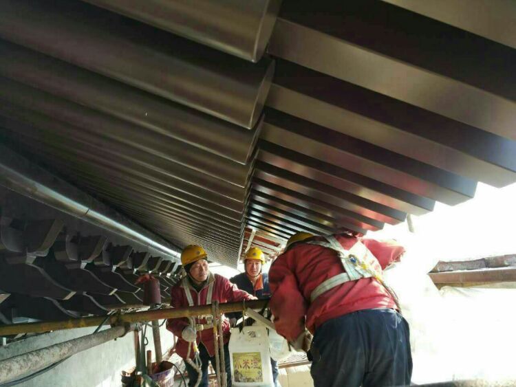 鋁斗拱及望板椽子安裝,全部在工廠加工好,現場組裝。