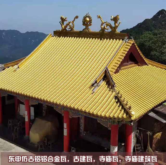 金屬仿古瓦是一種采用鋁合金板通過沖壓加工成仿古型瓦片,表面經(jīng)過多重氟碳漆噴涂工藝;通過打螺絲,底層鋪設(shè)龍骨焊接安裝;成仿古類型的金屬瓦片;具有具有耐腐蝕,耐光照,不易老化,壽命長,不褪色,老化,重量輕,易安裝的優(yōu)點;在寺院屋面改造,仿古街道改造,古建翻新,公園仿古屋面改造中得到了廣泛的應(yīng)用;