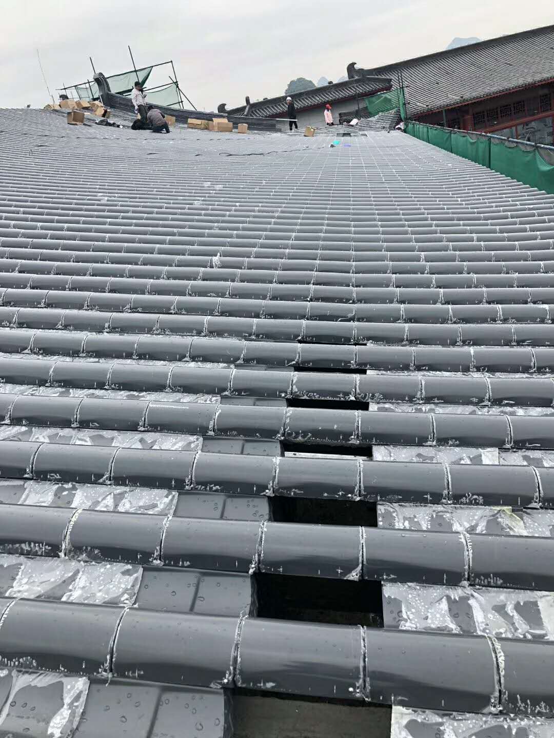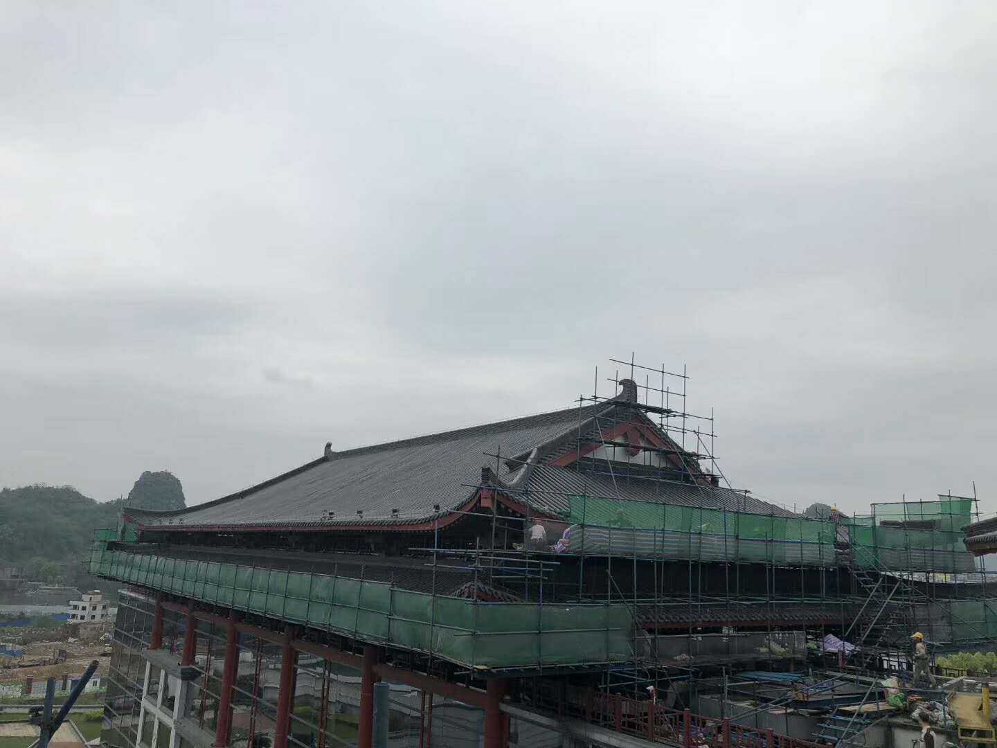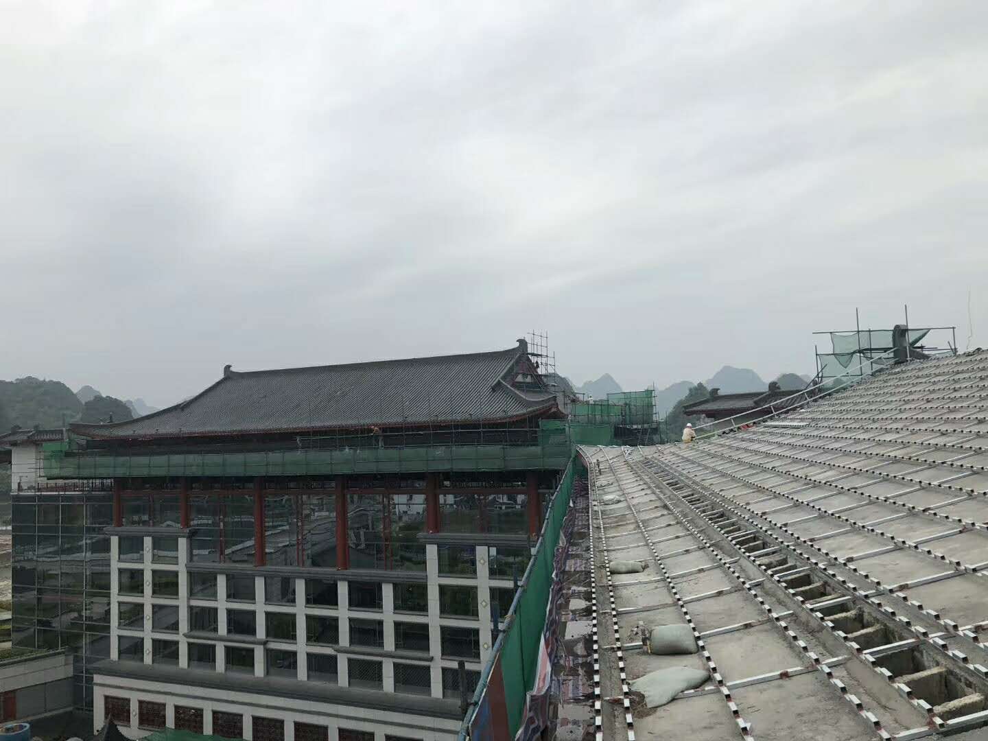 桂林山水甲天下,桂林香格里拉酒店屋面換瓦工程由東申瓦業供瓦,選擇鋁瓦代替已損壞,部分漏水的陶土瓦,為最明智的選擇,金屬仿古瓦,屋面工程約一萬平米;