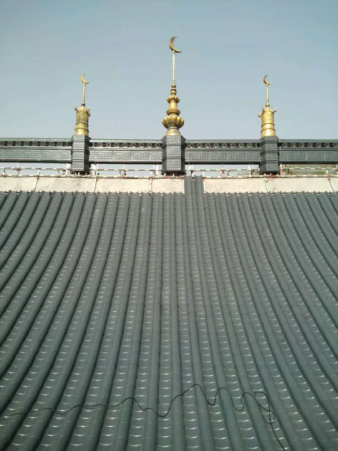 青海省湟中縣魯沙爾清真大寺,上街清真大寺,陽村清真大寺屋面改造正在施工,屋面鋁瓦工程馬上完工。