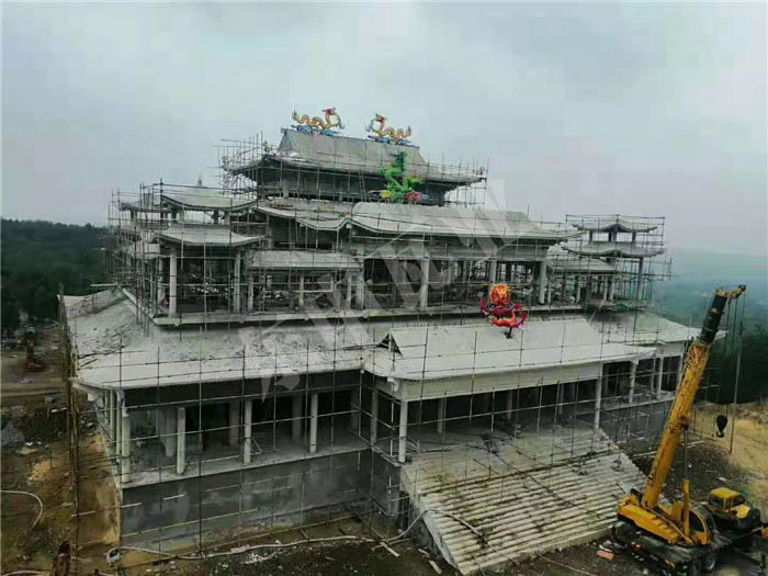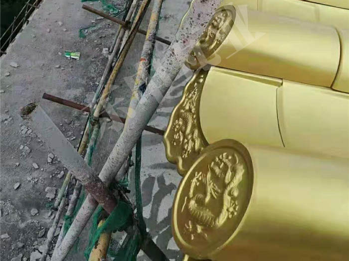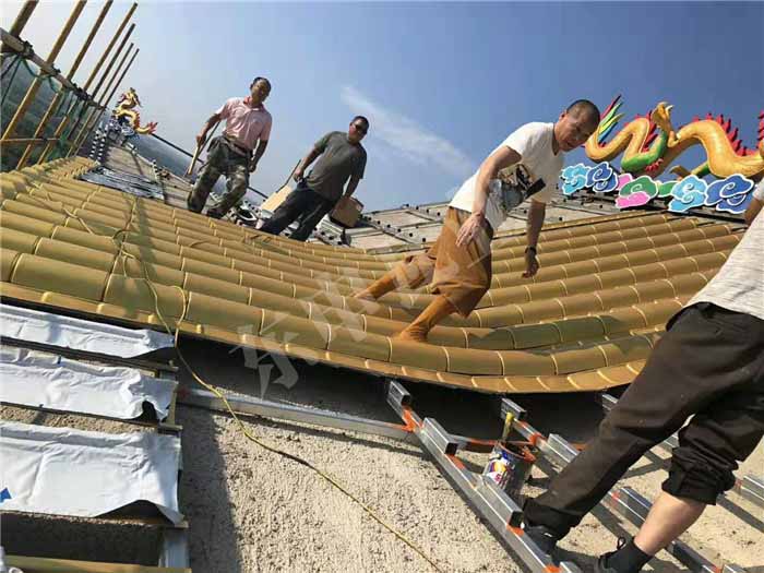7月30日山東濰坊寺廟瓦屋面仿古金屬工程施工順利進行,洪福寺屋面工程約3000平米,鋁瓦屋面安裝簡單,高效;東申鋁瓦-寺院專用仿古瓦,值得信賴.