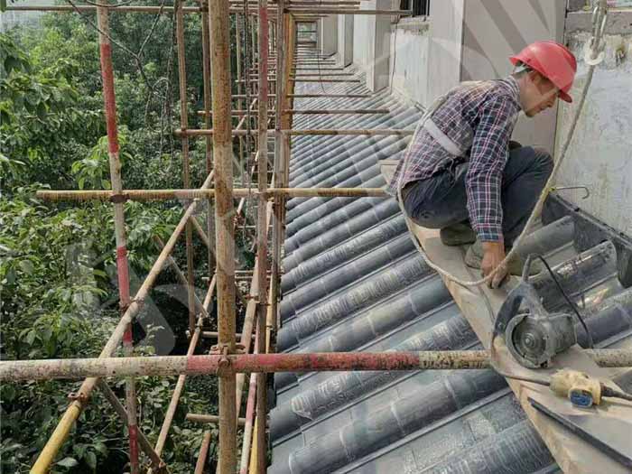 成都外國語學校屋面改造,使用東申仿古鋁瓦-連體瓦;共計2800平方,15天快速完工,中式仿古屋面,彰顯校園集聚古文化氣息.