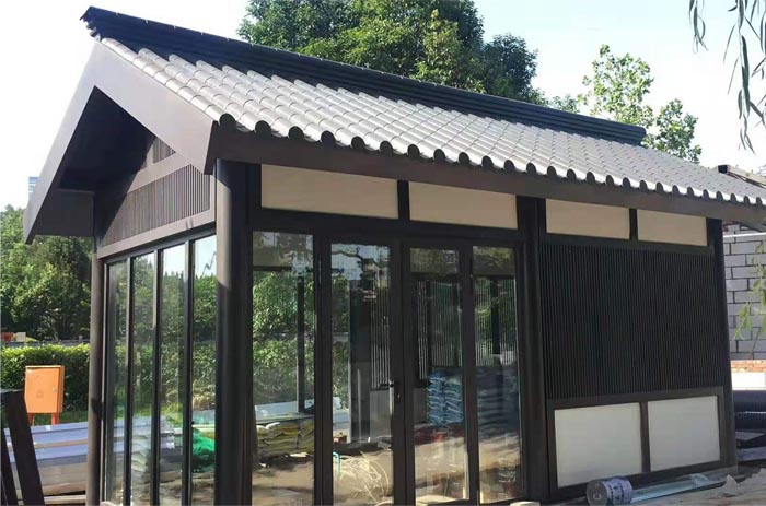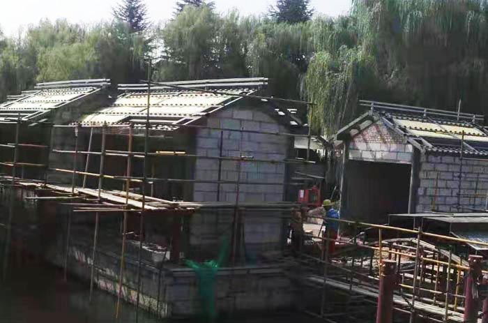 西安市大唐芙蓉園景觀提升改造胡店和北碼頭工程;屋面面積3800平方,共計(jì)58個(gè)小房子,感謝客戶對(duì)西安鋁合金仿古瓦廠家(東申)的支持和認(rèn)可,筑百年古建,用東申鋁瓦,景觀提升改造專用瓦,鋁合金瓦更合適.