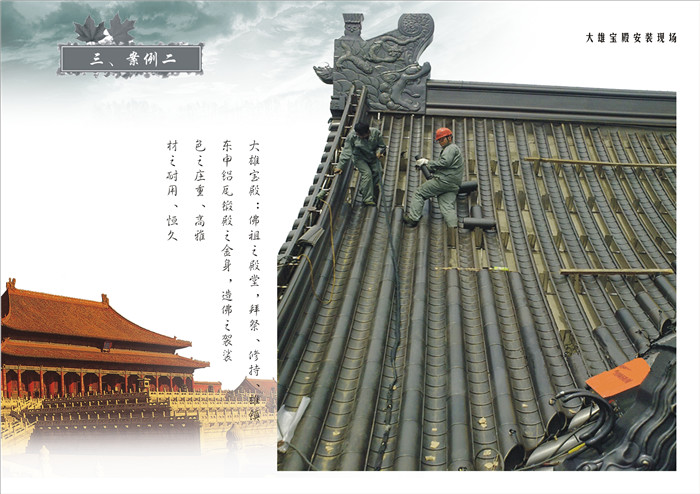 銅瓦做房屋屋面使用范圍主要針對寺廟,廟宇,寺院.牌坊地處偏遠區(qū)域;