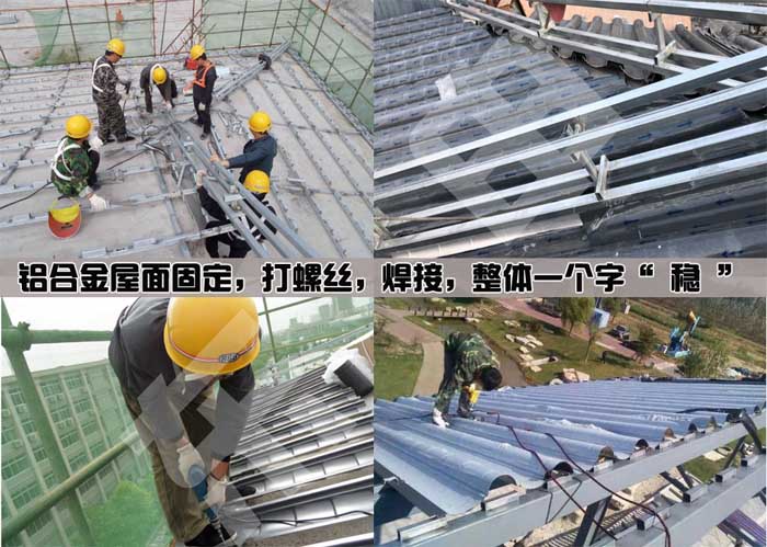 抗風:安裝主要是表面焊接和打螺絲安裝,任憑風怎么吹也不用擔心,風過大會吹散,像樹脂瓦和其他的瓦因為是舊的安裝方式,一旦風過大,表面就會被吹的吹起來;