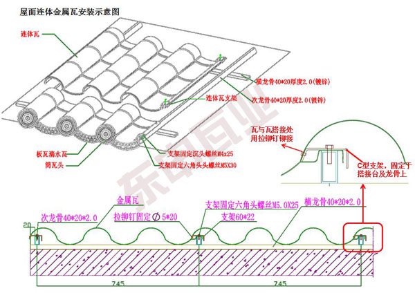 1.安裝中需按照【仿古瓦安裝手冊】的順序來進(jìn)行,保證效率;