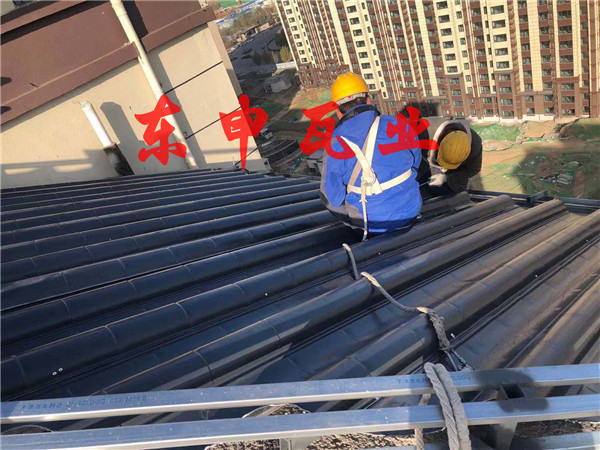 北京大興機場魏善莊回遷房鋁合金仿古瓦屋面工程項目,45棟樓樓頂屋面施工,面積約3.6萬平方米,采用東申鋁合金仿古瓦,2號連體瓦,供瓦施工歷時兩個月,完美收工;整體屋面美觀大方,突出建筑復古風格;