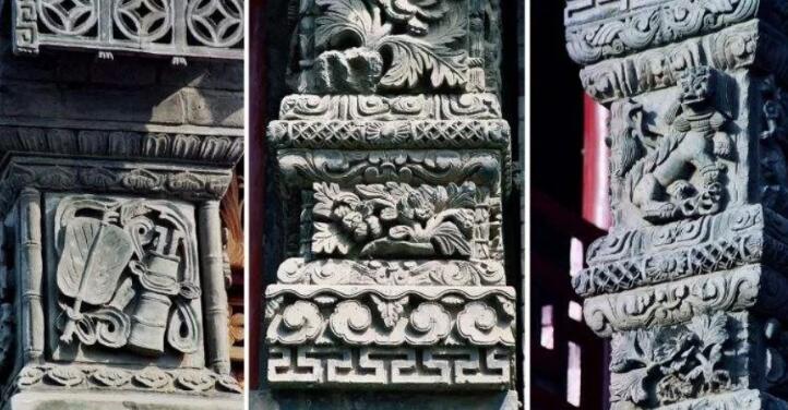墀頭:山墻伸出至檐柱之外的部分,突出在兩邊山墻邊檐,用以支撐前后出檐。本來承擔著屋頂排水和邊墻擋水的雙重作用,但由于它特殊的位置,遠遠看去,像房屋昂揚的頸部,于是含蓄的屋主用盡心思來裝飾。