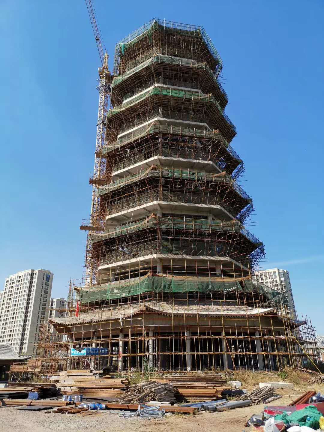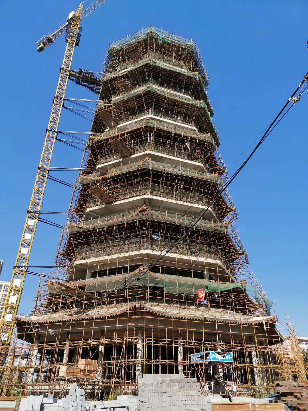 2020年5月12日東申瓦業承接的山東青島重點標志性項目文峰塔的屋面鋁瓦工程已經開始施工;