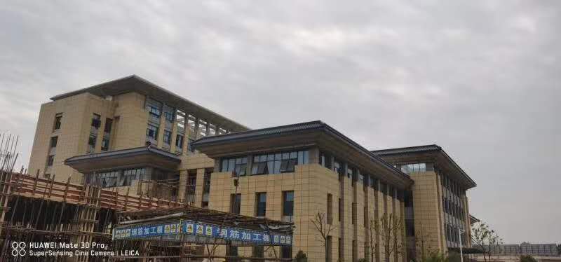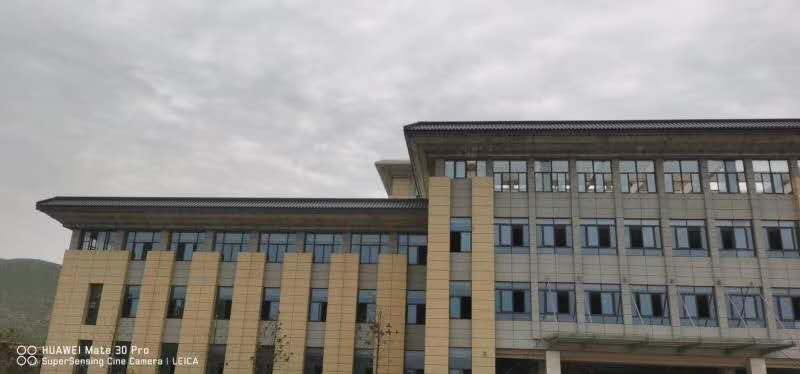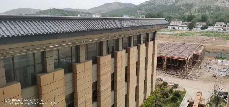 屋面面積:2800平方;屋面下選用鋁合金斜方椽;新中式風格,整體屋面美觀大方;