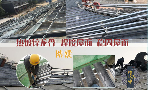 新型干法屋面安裝方式的固定屋面在一定程度上可以預防地震.普通的地震房屋不倒的情況下,瓦都不會出現任何問題;屋面都是焊接螺絲非常的穩固.