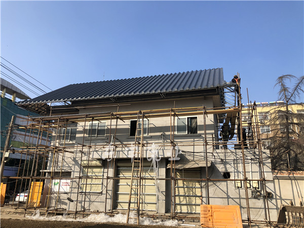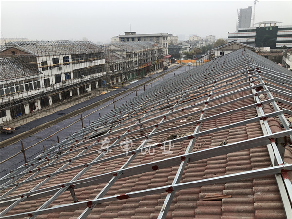徐州女媧街位于徐州市銅山區三堡,東起三堡街道環山西路、西止振興路;整條街整體改造為仿古風格;屋面改造面積約6000多平方;采用東申仿古金屬瓦,2號連體瓦型,厚度1.2mm,顏色為深灰色;真正打造一條新的仿古風景街;