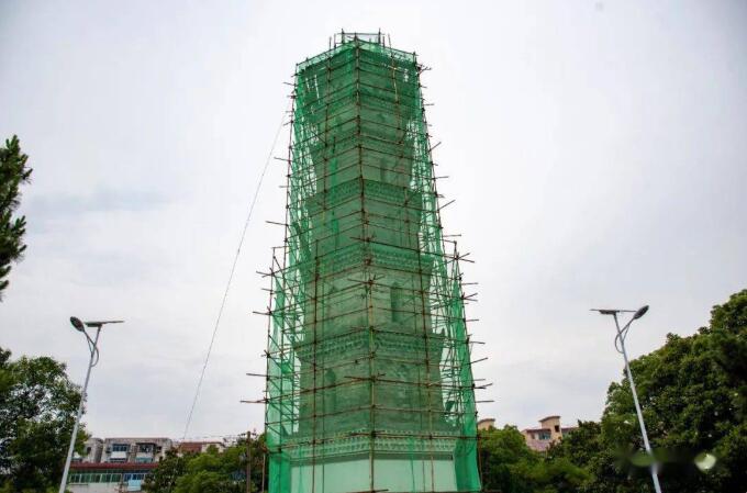 近日,記者到文峰塔下,只見塔身已包裹得嚴嚴實實,腳手架又高又密。工人們在塔上講話,就好像天上傳來的聲音。