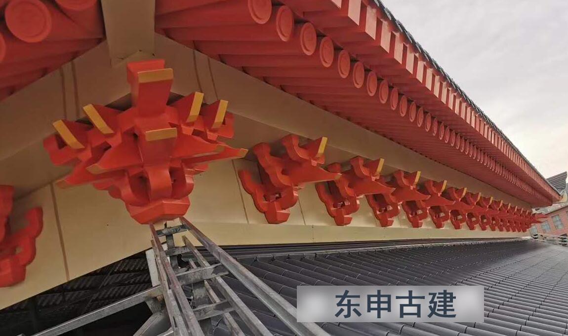 斗拱大量施工中,焊接工藝,新型斗拱金屬屋面系統(tǒng)代替?zhèn)鹘y(tǒng)屋面;