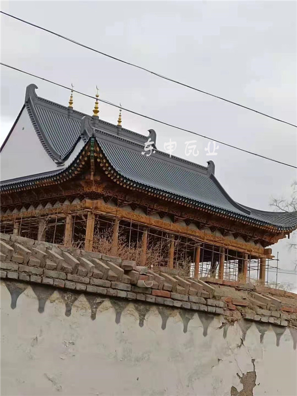 青海省黃南藏族自治州尖扎清真寺屋面改造工程順利完工,采用東申鋁鎂錳合金瓦瓦型2號分體瓦,厚度1.2mm,顏色:灰色;面積約1700平方,新中式仿古風格;感謝主任對東申瓦業的信任;