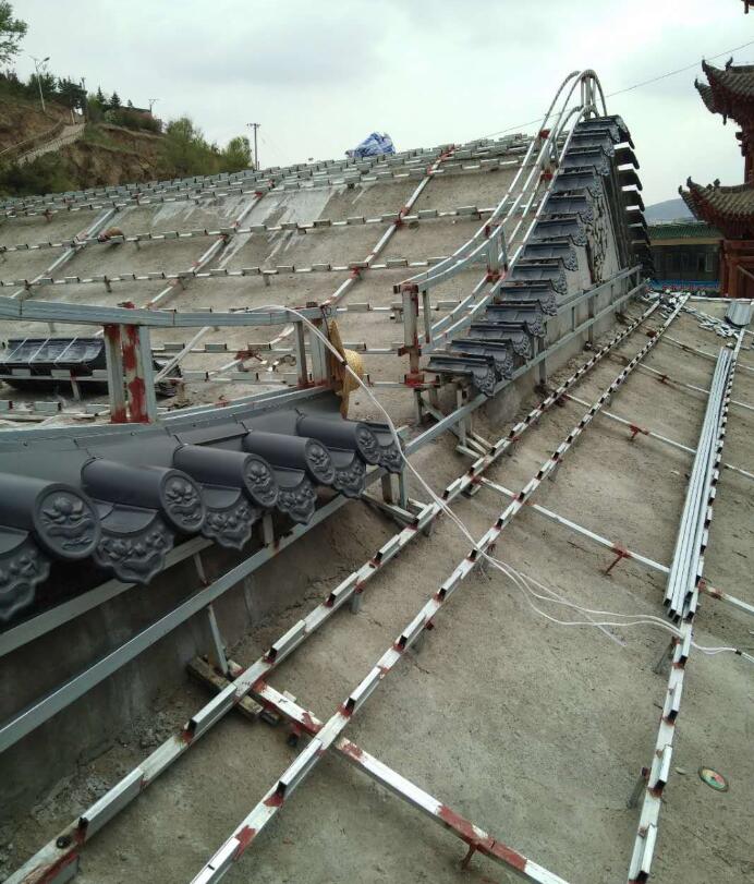 最后,當然還有屋脊的處理,屋脊也是使用鋼管來鋪設的,也是開始用龍骨來打好框架,用側板和筒瓦來密封外部的形狀,一般根據現場原有的屋面形狀來鋪設,保持原來建筑風格和樣式的情況下,更加完美化,比原來的屋面做的更加漂亮即可。