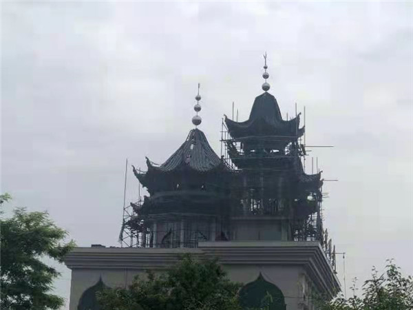 甘肅臨夏橋窩清真寺屋面全部更換為東申鋁瓦,瓦型選用3號分體瓦,顏色,灰色,厚度為1.2mm,面積約300多平方,感謝清真寺主任,阿訇的信任和支持。