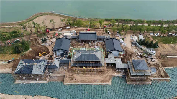 西安昆明池七夕公園鋁瓦屋面景觀提升工程正在進(jìn)行,整體昆明池七夕公園工程正在提升修建,仿古風(fēng)格長廊亭子屋面統(tǒng)一采用鋁合金仿古瓦,主要采用分體鋁合金瓦,厚度1.2mm;屋面修建正在施工;總體昆明池用瓦需求面積約8000平方;由東申瓦業(yè)供瓦.