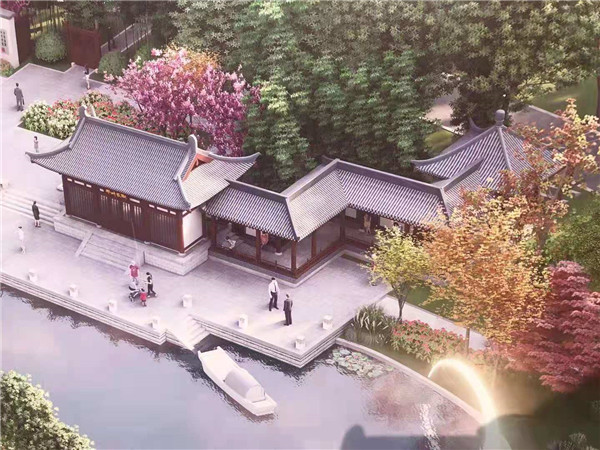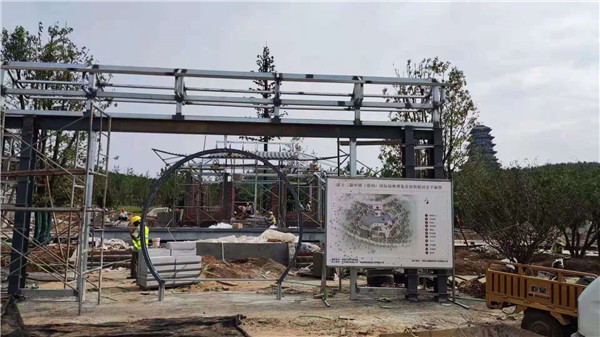 8月4日徐州園博園曲廊橋亭屋面鋁合金瓦工程