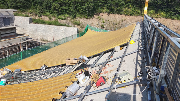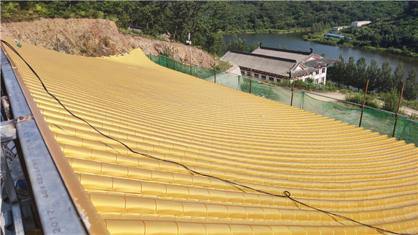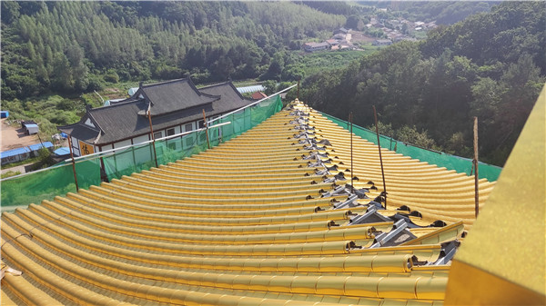 吉林萬霖寺屋面安裝鋁合金瓦,及金屬斗拱;采用金色2號分體瓦,金屬斗拱,唐代風格;整體面積約3000多個平方;歷時完美收工;寺院整體呈現富麗堂皇的氣息。感謝寺院師傅的信任和支持。