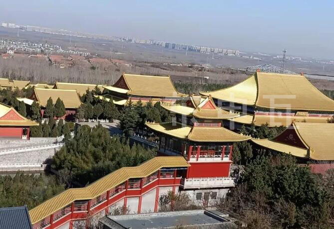 遠(yuǎn)觀整體的效果更多的金光閃閃,富麗堂皇,顯得尤為高大尚,金色瓦使用于寺院更顯大氣蓬勃,比普通的灰色更氣質(zhì),現(xiàn)在狠多的仿古建筑屋面都使用金色瓦,加上led量化工程,打造特色旅游景區(qū)為標(biāo)志建筑。