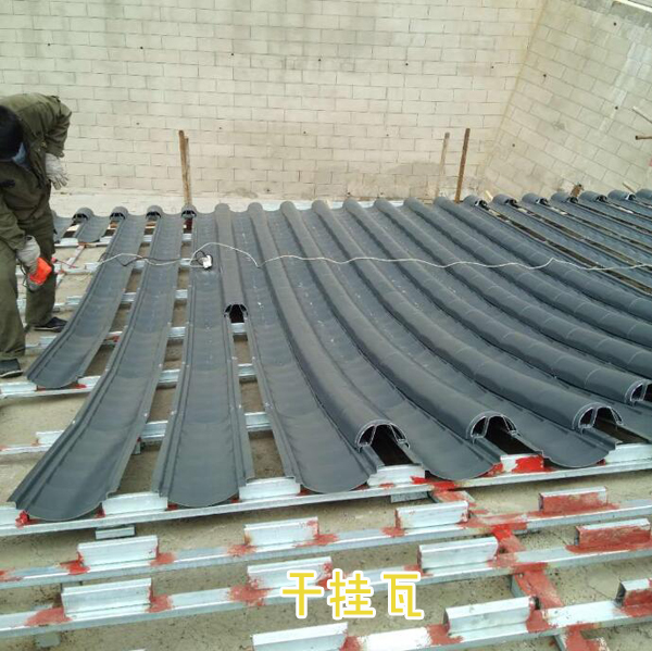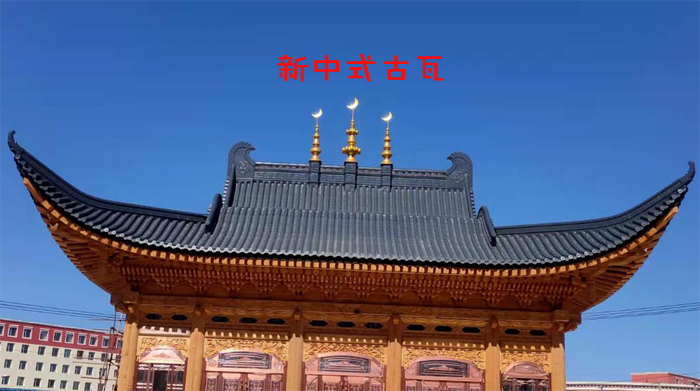 新中式干掛仿古瓦符合新時代的需求,既繼承了古代風格的瓦型和風格,又使用新時代的材料,兩者完美的結合,標志著新時代的產物。真正實現了干掛屋面(全金屬屋面)的屋面結構。