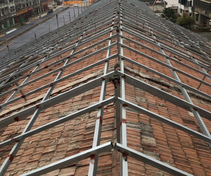 第一,在混凝土屋面(鋼結構屋面)安裝瓦的底層龍骨;橫龍骨鋪設在最下面用來調平屋面,豎龍骨鋪設到橫龍骨上面用于掛瓦。