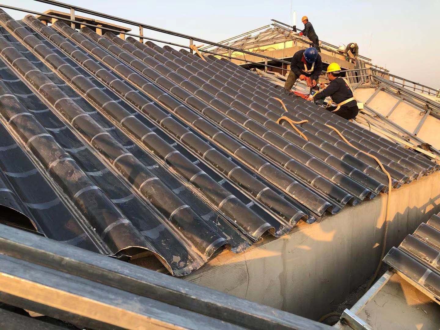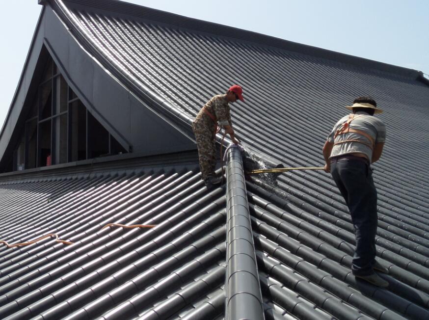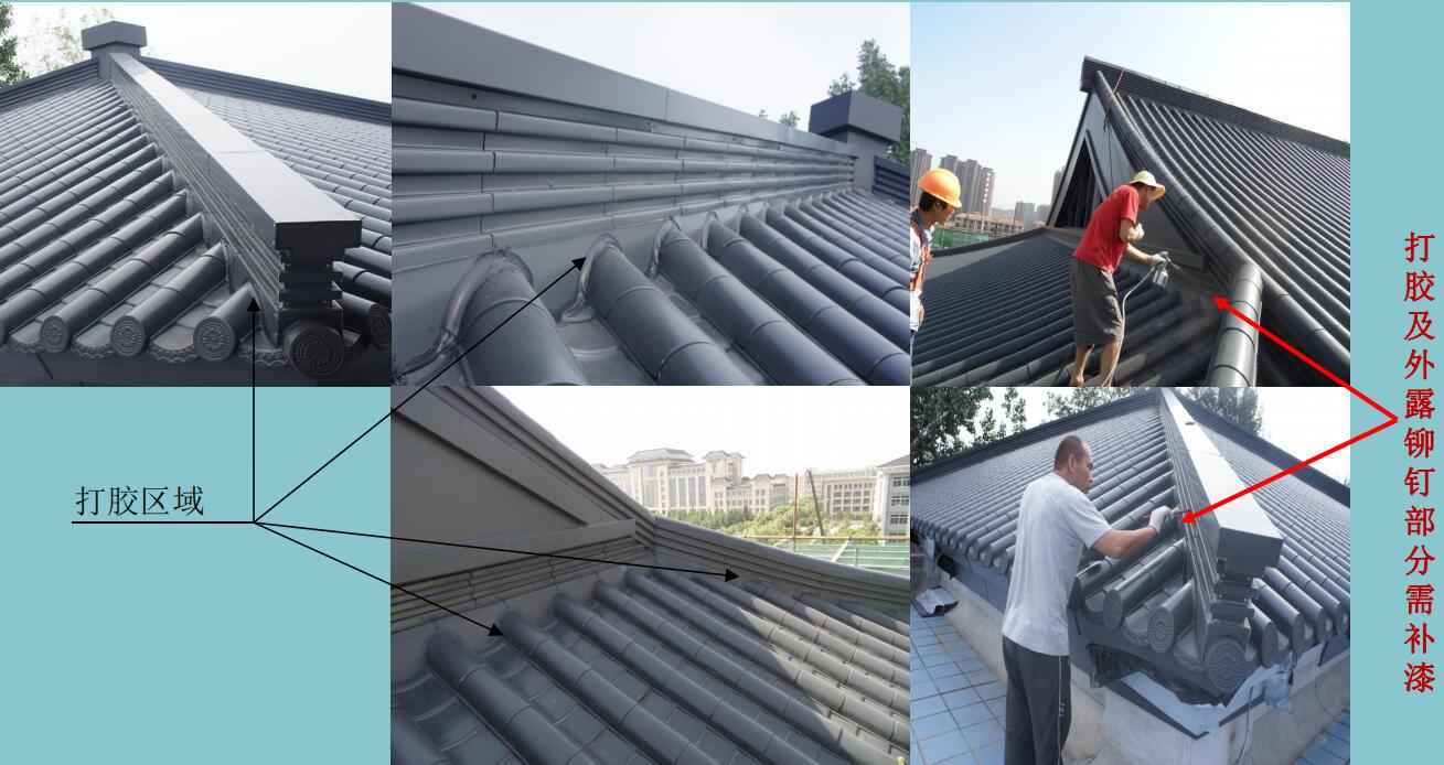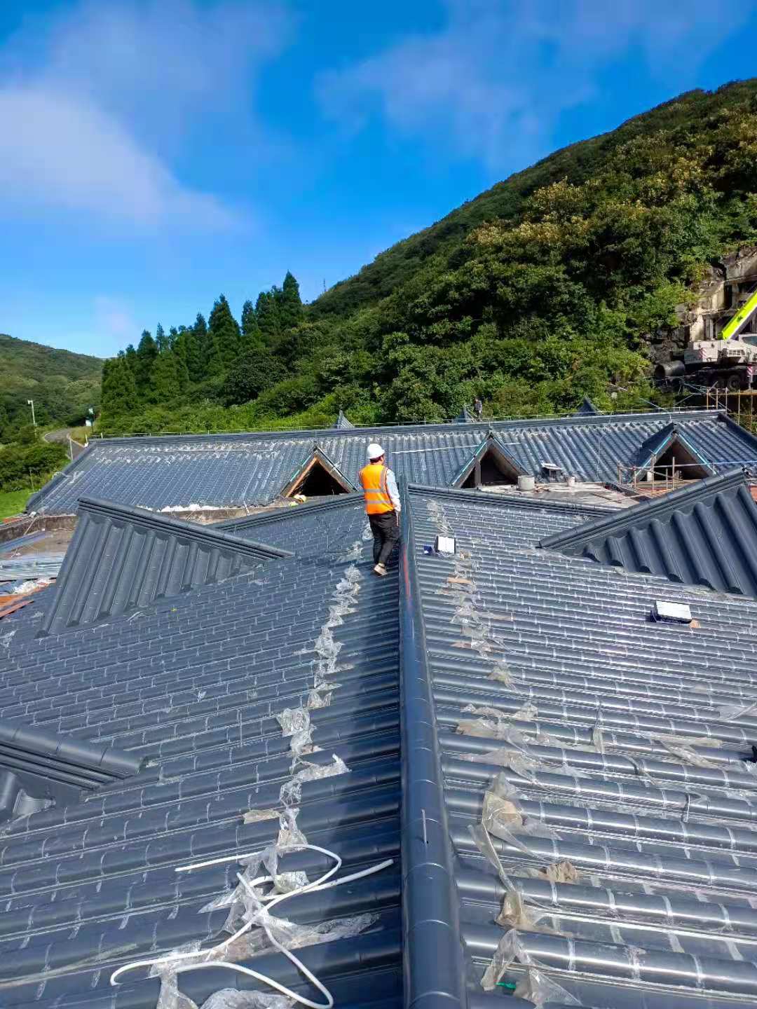 第三,安裝屋脊瓦和側板瓦,陰角瓦,陽角瓦;