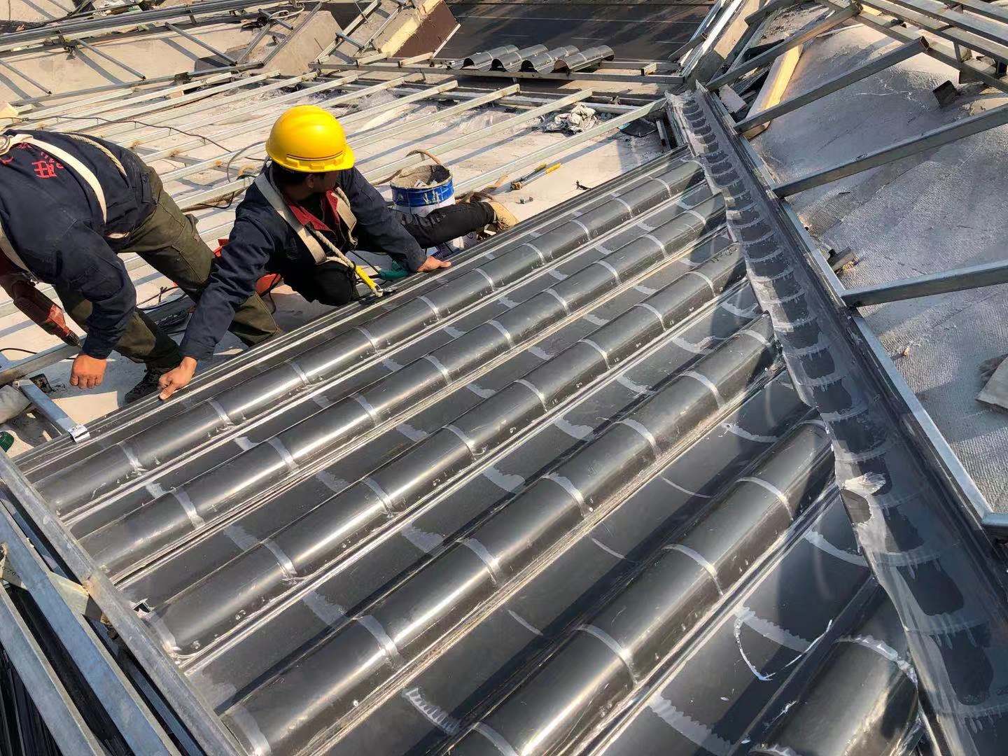 第二,安裝連體瓦,連體瓦直接掛在豎龍骨,瓦與瓦之間用支架相扣,先安裝屋檐瓦,后面的瓦直接搭接在屋檐瓦的搭接臺上。