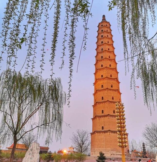 鶯鶯塔位于山西省永濟市普救寺內,它既是中國古代的“四大回音建筑”之一。普救寺始建于唐武則天時期,原名永清院,是一座佛教十方院。元代王實甫《崔鶯鶯待月西廂記》中說的“紅娘月下牽紅線,張生巧會崔鶯鶯”的愛情故事就發生在普救寺內。