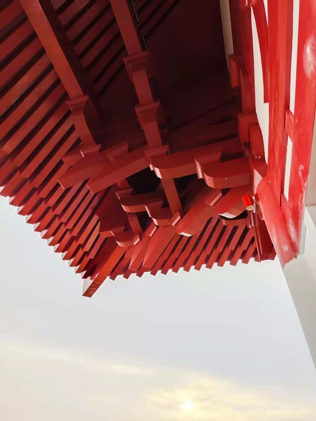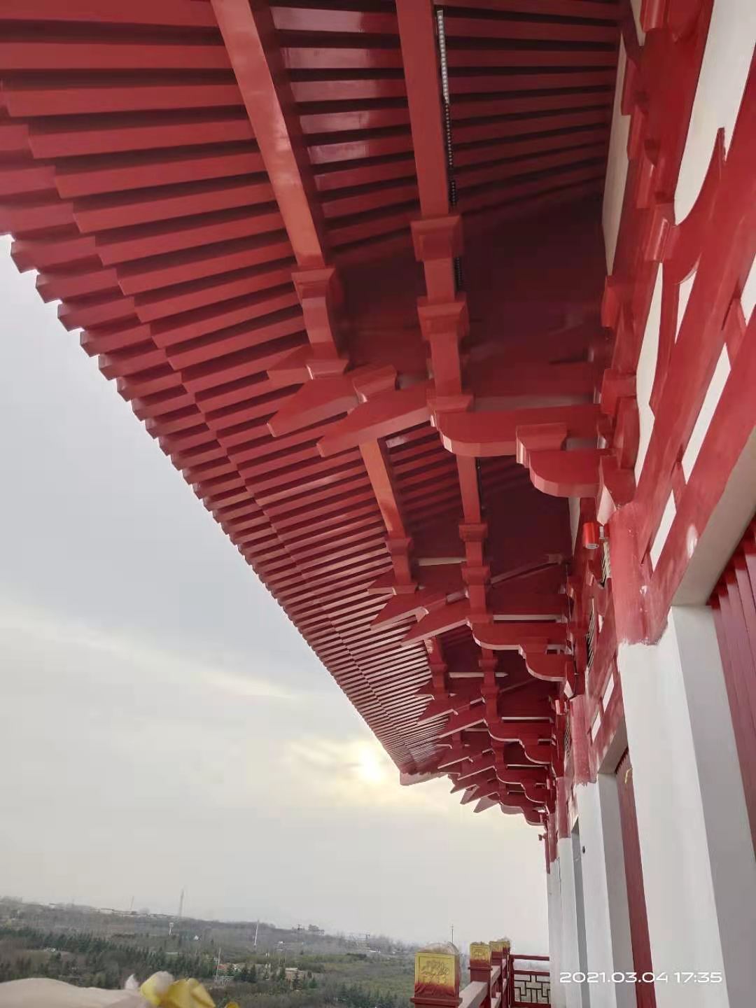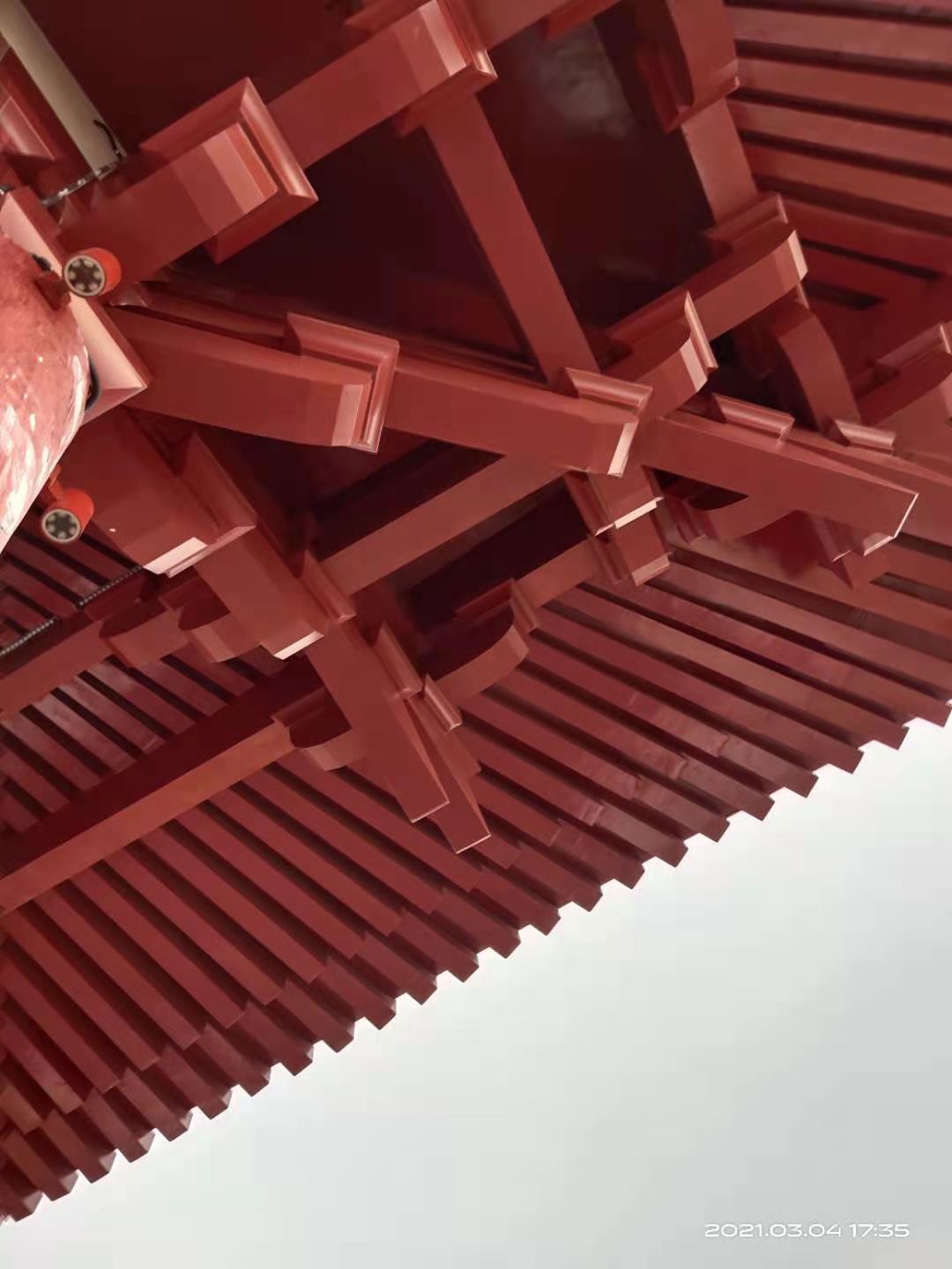 鋁合金斗拱尺寸可定制,根據客戶的建筑來定制尺寸。 原材料:鋁鋁鎂錳合金 工藝結構:焊接金屬板件,空心結構; 生產工步驟:剪板,折彎,打磨,噴漆;(隨著生產工藝的更新,現在很多噴漆由鋁板廠出廠滾涂噴好); 特 點:自重輕,經濟環保,容易搬運,造型美觀立體感強。具有耐高溫-耐低溫,耐光照,耐腐蝕,耐老化。