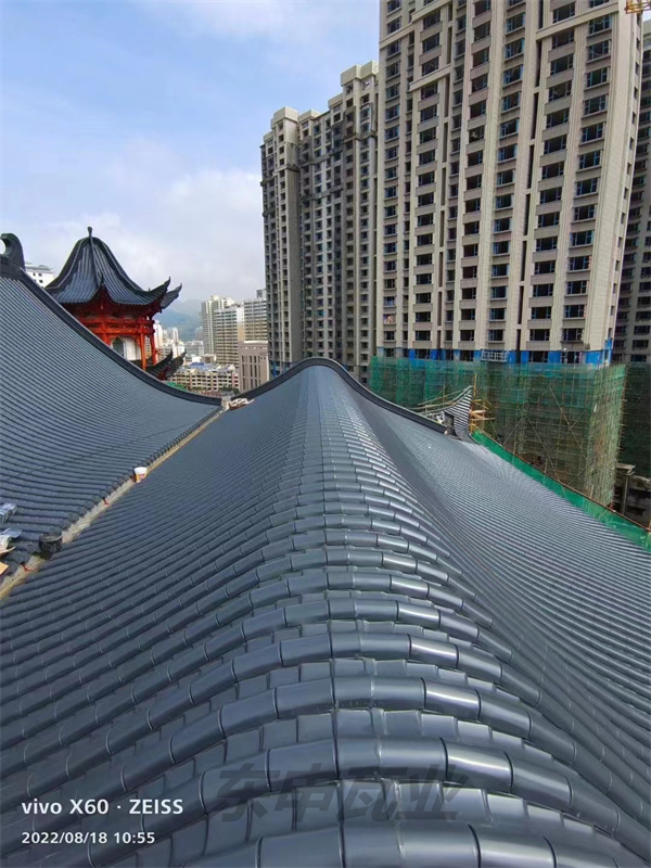 西寧楊家莊清真寺屋面仿古金屬瓦工程歷時完工,寺廟選用我公司鋁鎂錳合金材料瓦片,款式為2號分體瓦,厚度1.2mm;風格:新中式仿古瓦風。面積約2500平方,感謝西寧楊家莊清真大寺主任對我公司的信任和支持。