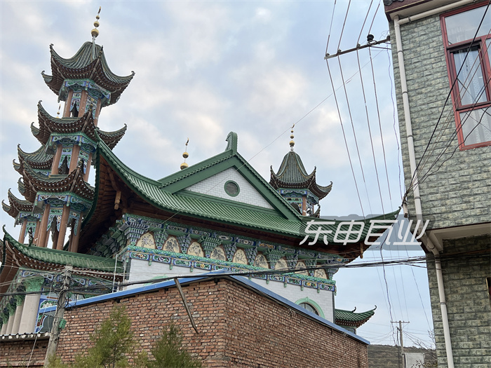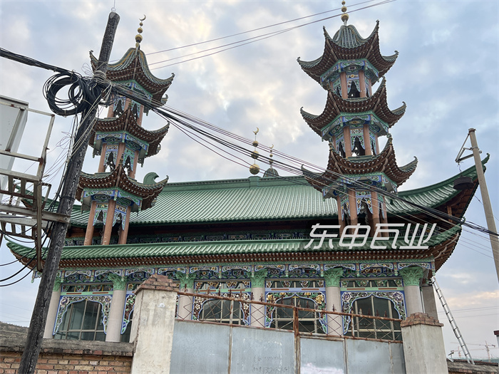 天水張家川瓦泉清真寺金屬仿古瓦屋面改造工程歷時完工;大殿面積約850個平方米;整體屋面選用瓦材質為鋁合金材質,款式為一體仿古瓦,型號:3號瓦;厚度:1.2mm;顏色:綠色;風格:新中式仿古風;感謝瓦泉清真寺主任和阿訇對東申瓦業的信任和支持。