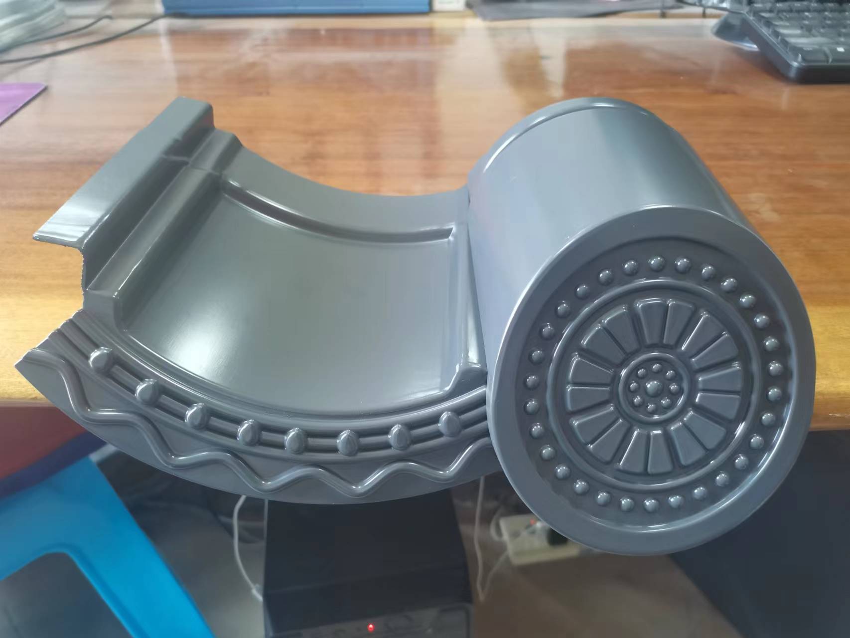 仿古金屬瓦就是將金屬材料板,通過精密設備沖壓成仿古瓦片的樣子即可,表面工藝為氟碳漆工藝。不同于傳統瓦的是仿古金屬瓦屋面需要一些佩飾,還有瓦的屋檐前有瓦當,滴水,屋頂有屋脊側板,吻獸,四周圍有翹腳,小獸,這些屋面裝飾。