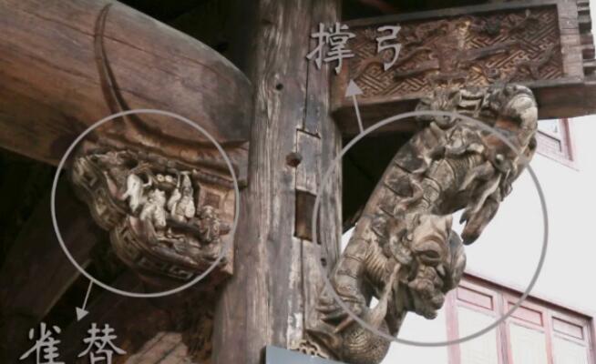 建筑大師梁思成先生在他的《中國建筑圖集》提到一種“似是而非的雀替”,就是中國南方,特別是江浙地區和皖南一帶普遍存在的“撐弓”。