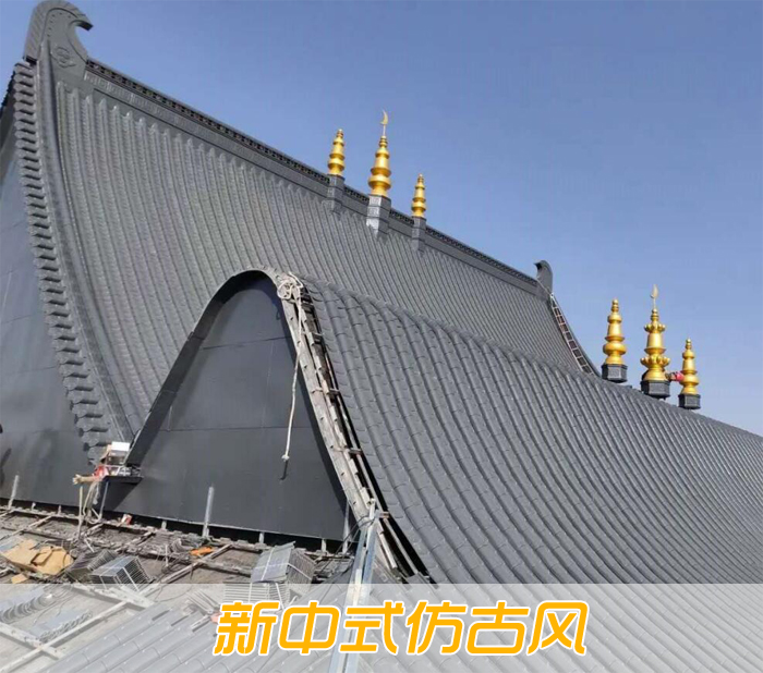 仿古金屬瓦的好處:甘肅地區常年高原氣候,風大,干燥;對于傳統的屋面瓦,比如前幾年流行的樹脂瓦;可能5年左右就會出現開裂和松動;仿古金屬瓦作為金屬材質;基本在屋面直接焊接方式和打鉚釘鏈接瓦片;打造新型的全屋金屬系統;給寺廟屋面帶來了福音,壽命長達50年之久,它的出現給傳統瓦帶來了競爭壓力。
