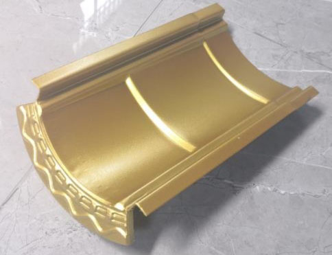 金色和其他的顏色的鋁瓦不同,它多一道添加入金粉的工序。從表面上看到瓦的表面會出現一定的紋理感,表面不是光滑的,摻入了金粉的感覺,如下圖: