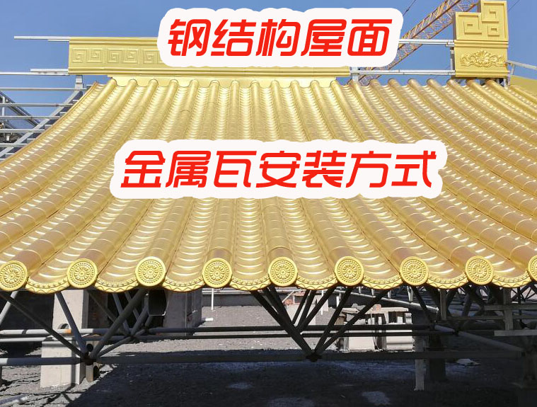 大家再來看看金屬瓦的安裝方式,先在屋面底層打預(yù)埋件,然后在預(yù)埋件上焊接豎龍骨,豎龍骨上焊接橫龍骨;橫龍骨上面安裝瓦;這一步就能看出,我們的瓦和屋面不是緊貼著,中間還隔了一個(gè)空間,就跟我們家里的吊頂一樣;夏天不熱,冬天不冷。