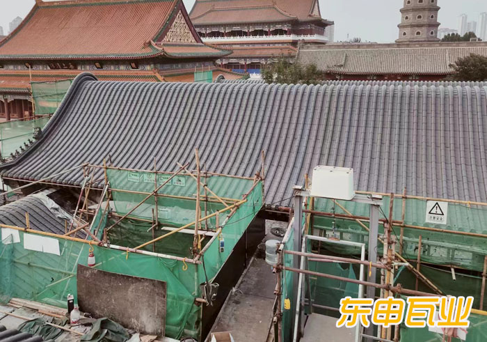 天津大悲院屋面仿古瓦鋁瓦施工完成歷時(shí)三個(gè)月,選用東申瓦業(yè)的3號分體鋁瓦,厚度1.2mm;顏色為灰色;風(fēng)格為明清風(fēng)格;整體屋面為卷棚屋面,用鋁瓦安裝外表面呈現(xiàn)滿滿的金屬質(zhì)感,工藝精致,施工精心;非常感謝大悲院領(lǐng)導(dǎo)對我公司的信任和支持;寺廟用瓦,就選東申鋁瓦。