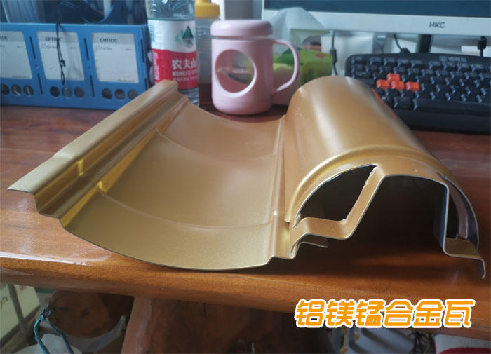 主要以鋁材為基材,在里面加入鎂,錳元素制作成的金屬板,經過精密設備沖壓成瓦的形狀;表面噴涂氟碳漆或者聚酯漆.