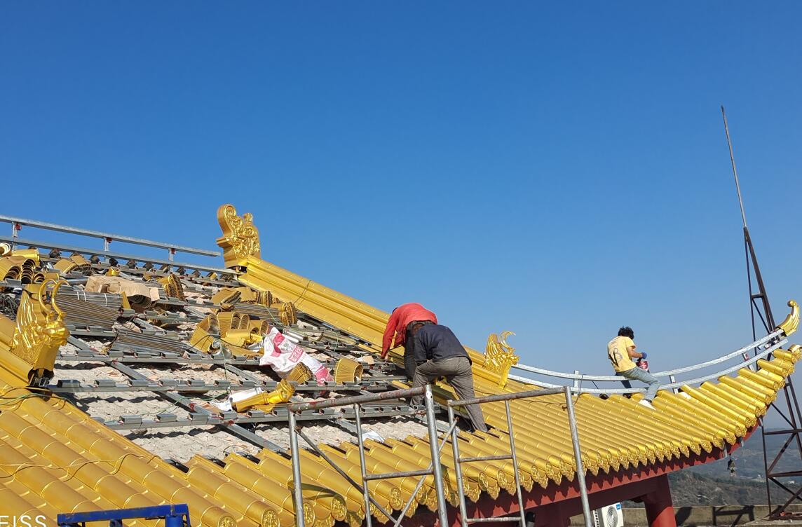 安裝瓦的順序也一定是先安裝板瓦,再安裝筒瓦,順序為從屋檐到屋脊的安裝順序,邊安裝,邊調平整個屋面的效果,只要屋檐這塊安裝對了,后面直接往上延伸即可,不會出現大的方向錯誤。