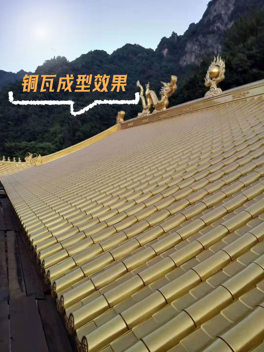 金屬銅瓦在所有的金屬瓦里面是壽命最長的,它上屋面后幾乎百年不壞;對于很多寺廟屋面,佛塔屋面來說,真是帶來了福音,對于這些建筑常年維修真是一件讓人頭疼的事情,不僅僅浪費金錢和人力;更多的是增添了很多煩惱。