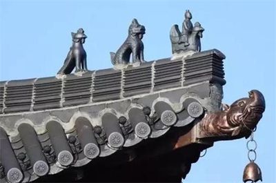 在中國古建筑中,屋脊是屋面的一個(gè)重要組成部分,也是屋頂?shù)闹匾b飾部位。特別是在皇家建筑或大型寺廟的主殿上,屋脊上都有一些獸形的裝飾瓦件,根據(jù)它們所處的位置不同,有不同的稱呼和定義。