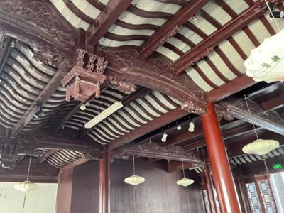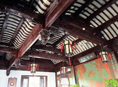 花籃廳也是其中一種形式,一般都位于建筑主體的偏路,前后有花園和庭院,作為休閑雅聚的場所,梁架形式別致,造型典雅、裝飾華麗、雕刻精美。