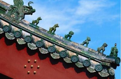 屋脊不僅僅是等級(jí)地位和封建倫理的表現(xiàn),古人在建設(shè)屋脊時(shí)同樣注重他的審美文化,屋脊的主要裝飾物大部都分布在房屋頂部框架的邊緣線輪廓上,而不同走獸的排列方式以及走獸的姿態(tài)和形狀,也要經(jīng)過詳細(xì)的考量,從而使得多個(gè)走獸排列在一起會(huì)有更強(qiáng)的整體感,視覺上更有氣勢,更加美觀,而并非是一種只注重倫理觀念的雜亂無章或者混亂無序。走獸的形態(tài)富于變化,姿勢各不相同,不同的姿勢恰恰將動(dòng)靜反映得淋漓盡致,這也體現(xiàn)出屋脊的外在審美也講求動(dòng)靜的結(jié)合和統(tǒng)一。因此,古人也在屋脊上大下功夫,注重它的外在審美氣質(zhì)和內(nèi)在封建等級(jí),從而構(gòu)成內(nèi)在與外在的高度統(tǒng)一。