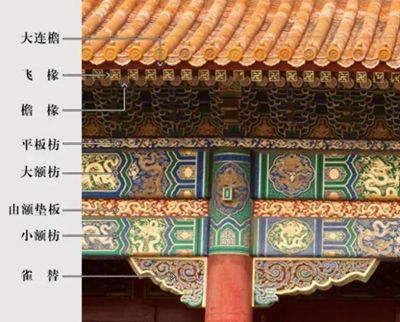 大連檐:在清式建筑大木作中是一種構件,宋式則稱作“小連檐”。它位于屋檐檐頭,安置在飛椽之上,其上皮是瓦口木,呈三角形斷面。長度能達到仔角梁端頭,會隨著翼角翅起而緩緩上升。