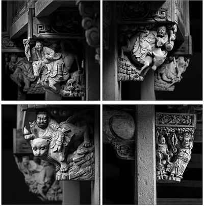 其中砌墻粉刷的泥工稱為“水作”;建造木構架,做門窗的木工稱“木作”。另外還有石工、竹工等。這種以師徒或家族、同鄉為主體的施工組織者被稱為“作頭”。第一次有文字記載的“水木作”出現在清道光二十五年(1845年)。記載作坊中有木工、泥工、雕鋸工、石工、竹工等。