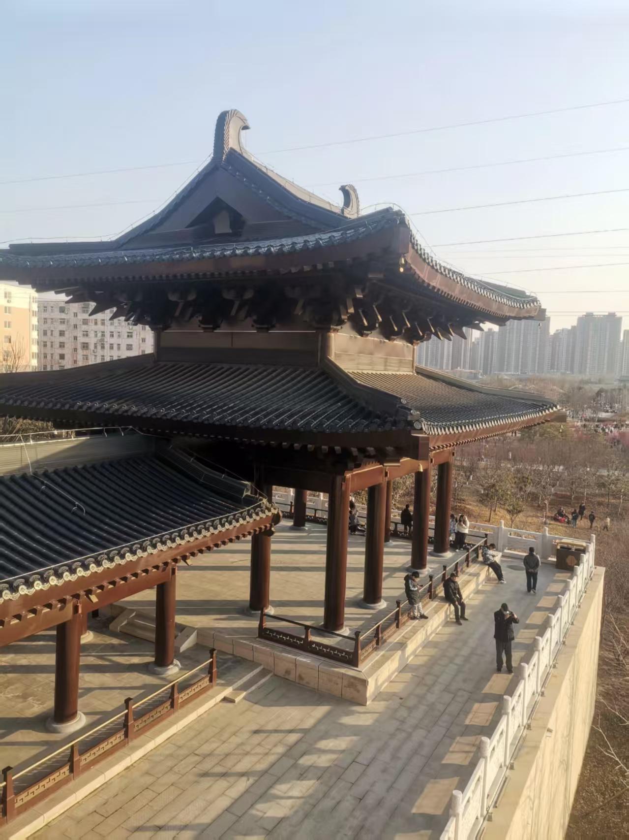 鄭州晴云閣屋面古建筑鋁瓦工程;選用東申2號分體瓦和3號分體瓦,面積約5000平方米材質鋁鎂錳合金瓦,表面氟碳漆工藝;厚度1.2mm;顏色為深灰色。