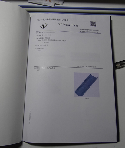 2015年1月28日我公司研發生產的鋁板瓦專利獲得中華人民共和國國家知識產權局認可并頒發證書!后面筒瓦等相關專利都在申請中!