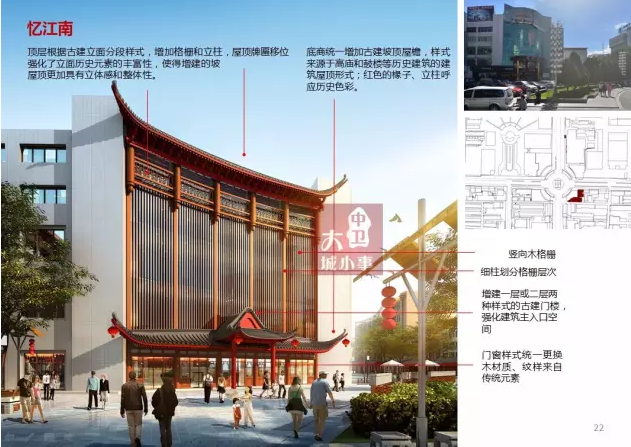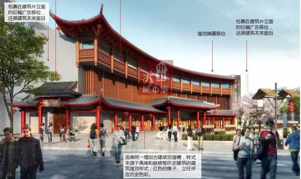 建設(shè)風(fēng)格以明清古建筑風(fēng)格為主,與高廟、鼓樓風(fēng)格協(xié)調(diào)一致,打造歷史文化街區(qū)。改造范圍包括北到長城路、南至沙坡頭大道,東到文昌街、西至應(yīng)理街的重要建筑、街道。一期重點(diǎn)對(duì)三片區(qū)(高廟公園核心區(qū)、紅太陽廣場片區(qū)、鼓樓片區(qū))、五街道(鼓樓東西南北街、興隆北街共4300米)100棟建筑的外立面進(jìn)行仿古改造。外立面提升改造主要在建筑沿街及側(cè)面、檐口強(qiáng)化明清古建筑風(fēng)格,窗口玻璃幕墻增加古建筑符號(hào),沿街適度增加古建廊道。